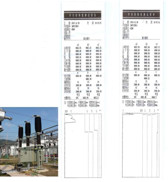 2015年12月28日,我公司现场技术人员,在500kV 天柱(温州东)变电站,使用CT8009高压开关动特性测试仪,采用双端接地(BSG),对西门子(杭州)高压开关有限公司生产的3AP1FG 六氟化硫断路器,进行分闸、合闸时间测试。