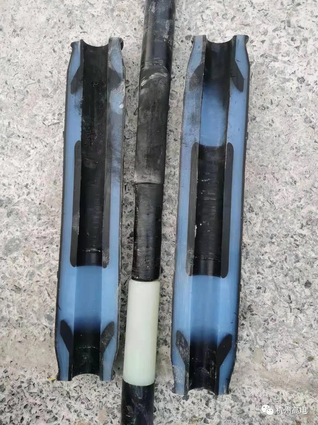 高压闪络法精准定位:为确保故障点精确定位,通过高压闪络法球间隙直流放电方式进行验证,并通过现场进行高压闪络放电声音监听来确定具体的故障点位置。沿电缆路径排查,共发现两处存在放电现象。与低压脉冲故障波形显示位置约200m、900m位置基本吻合,现场剥开电缆外护套发现电缆铠装已经遭到破坏。