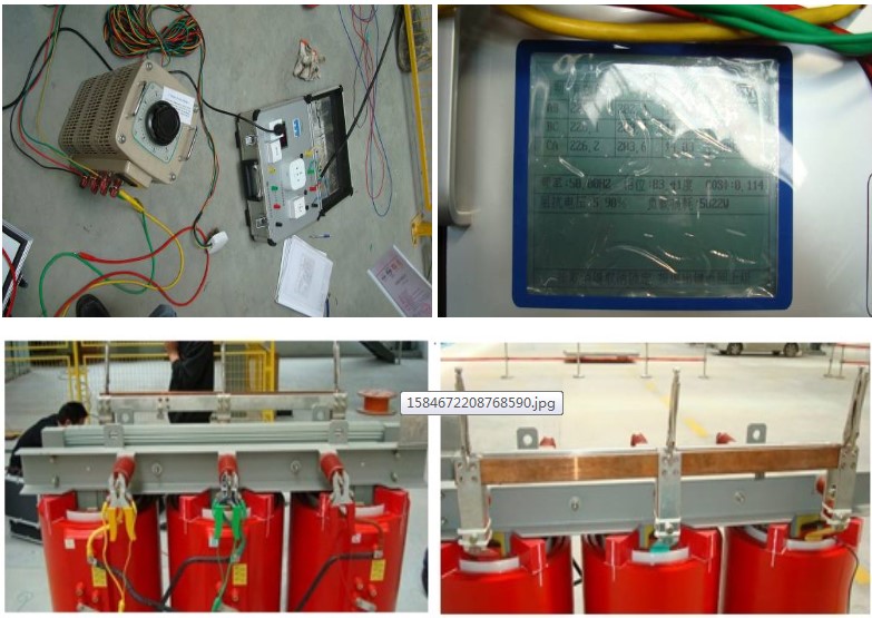 2010年5月11日,公司技术人员在浙江派尔使用本公司变压器特性参数测试仪进行了相关测试。被测变压器为三相干式变压器,额定容量630kVA、电压10000\0.4kV、电流36.37\900A,以下是相关的现场测试数据及测试时的照片: