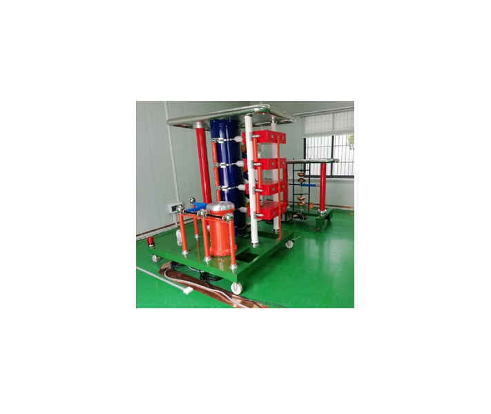 3、本体绝缘支柱4级塔式结构.每级包括1台MWF50-2.0*2铁外壳油浸式脉冲电容器、充电电阻、波头电阻、波尾电阻和点火球隙等,所有同步放电球均装在封闭的绝缘内,通过控制台可手动调节球隙